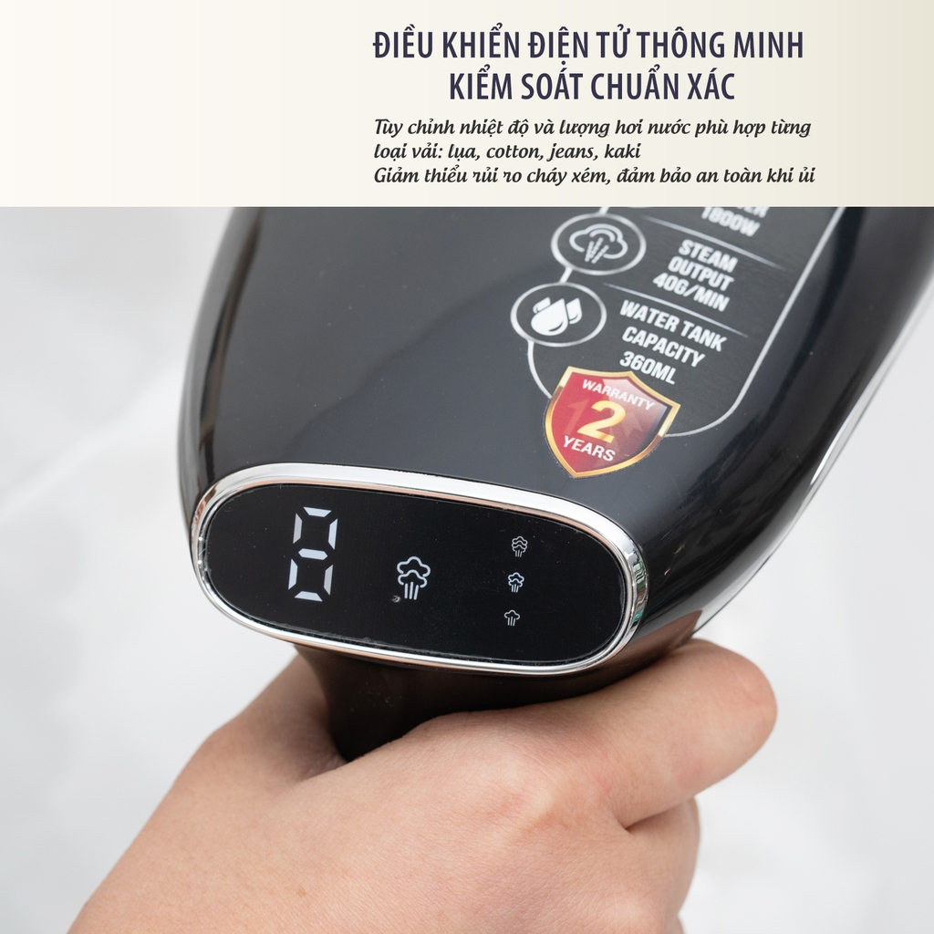 Hệ thống điều khiển hiện đại giúp bạn dễ dàng lựa chọn mức nhiệt độ và hơi nước phù hợp với từng loại vải, hạn chế nguy cơ cháy xém hay làm biến dạng sợi vải.