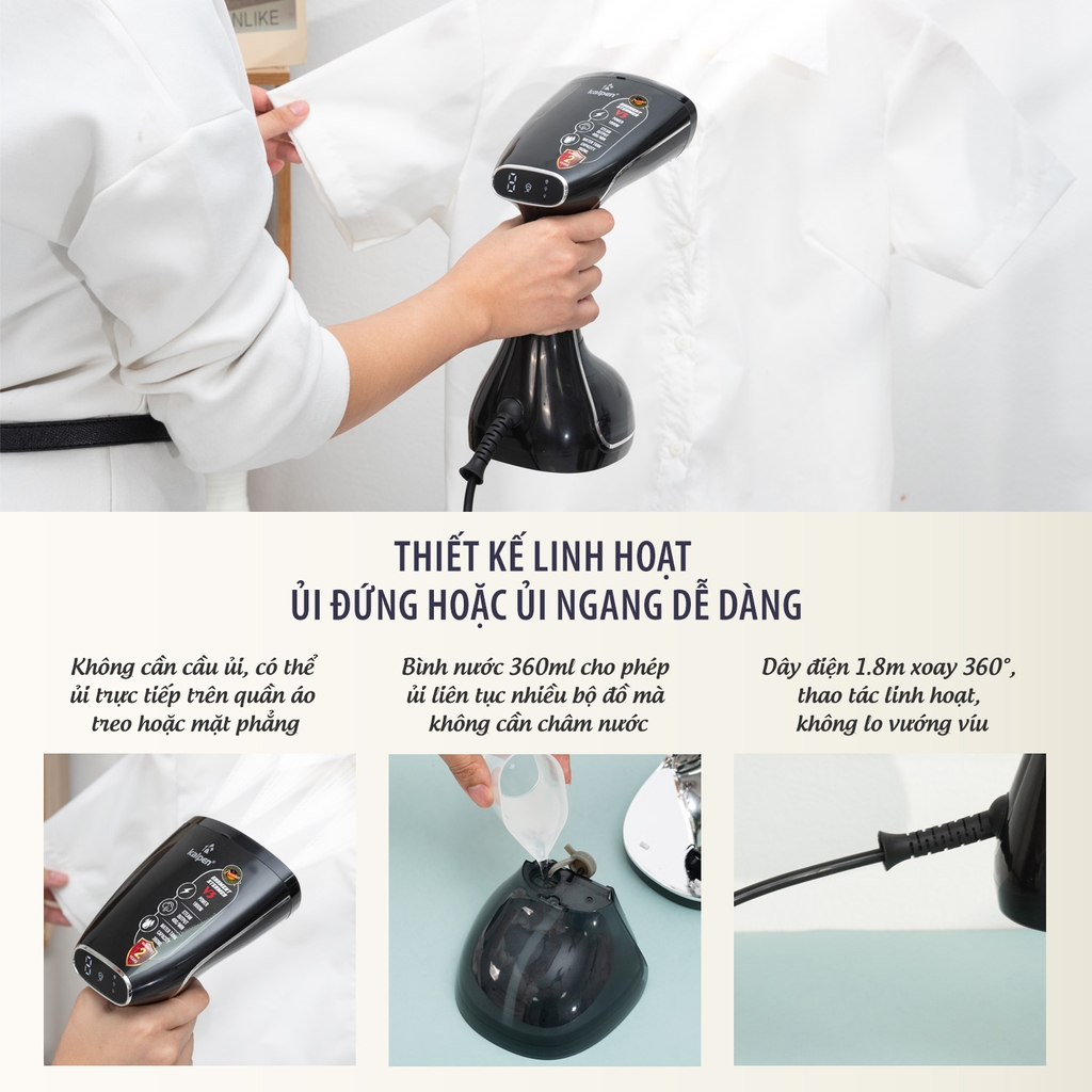 Bàn ủi hơi nước cầm tay Kalpen V3 - sản phẩm hoàn hảo giúp quần áo luôn phẳng đẹp, tiết kiệm thời gian và công sức!