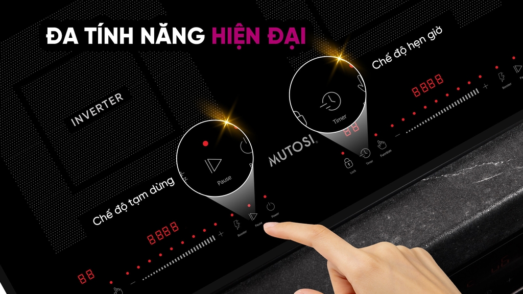 - Bếp từ Mutosi còn đem tới sự an tâm tuyệt đối cho người dùng khi được tích hợp một loạt các tính năng cảnh thông minh như: