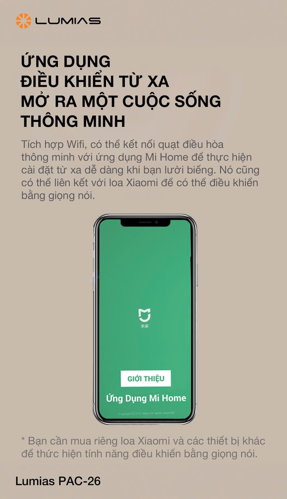 PAC-26 tích hợp Wifi, cho phép kết nối với ứng dụng Mi Home, giúp bạn: