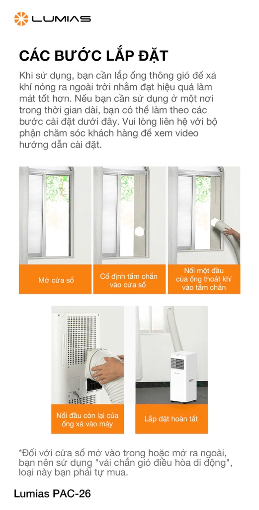 Điều hòa di động Lumias PAC-26 hỗ trợ: