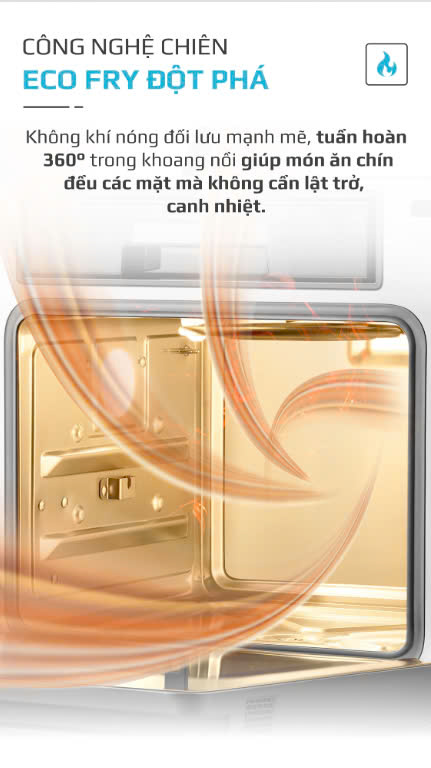 ✔️ Công nghệ chiên đột phá Eco Fry: giảm lượng dầu mỡ, thành phẩm giòn ngon không bị ngấm dầu, phù hợp với mọi loại thực phẩm.