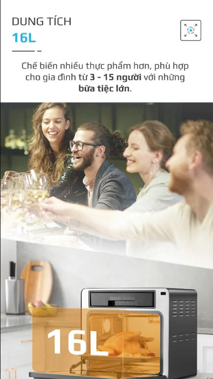 ✔️ Dung tích 16L cùng hộp chứa nước 600ml giúp chế biến đồng thời lượng lớn thực phẩm mà không cần chia nhỏ, giúp tiết kiệm thời gian.