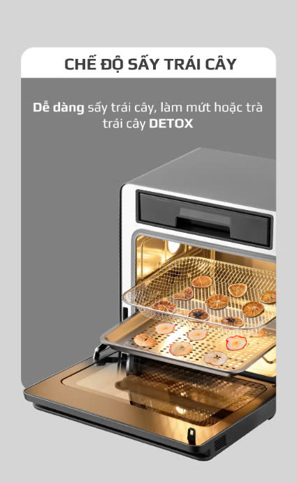 ✔️ Dải nhiệt rộng từ 30-230 độ C nấu gì cũng ưng: ủ sữa chua, sấy hoa quả đến quay gà, tôm, cá…