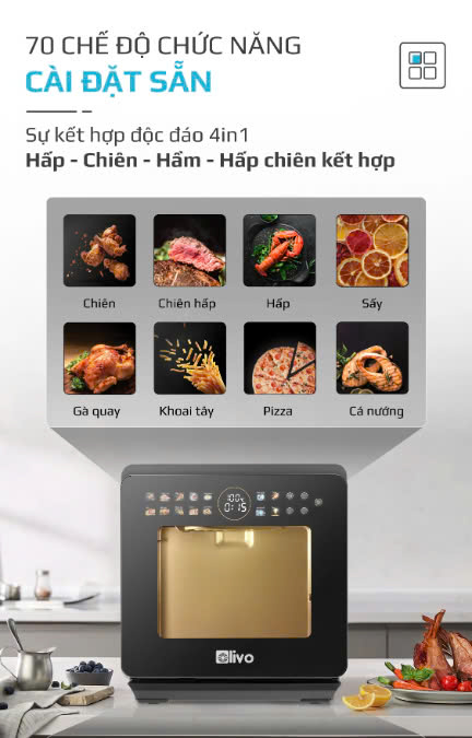 ✨ 70 chức năng cài đặt sẵn: dễ dàng chế biến nhiều món ăn khác nhau, từ chiên, nướng truyền thống đến các món hấp, nướng, hầm, làm bánh.