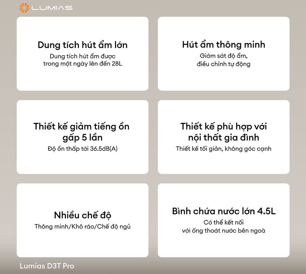 | Tên sản phẩm | Máy hút ẩm Lumias D3T Pro |