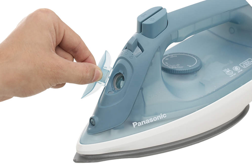 Bàn ủi hơi nước Panasonic thiết kế màu xanh nhẹ nhàng, trọng lượng chỉ nặng 1.1kg, tay cầm bằng nhựa cầm nắm vừa vặn di chuyển thoải mái.