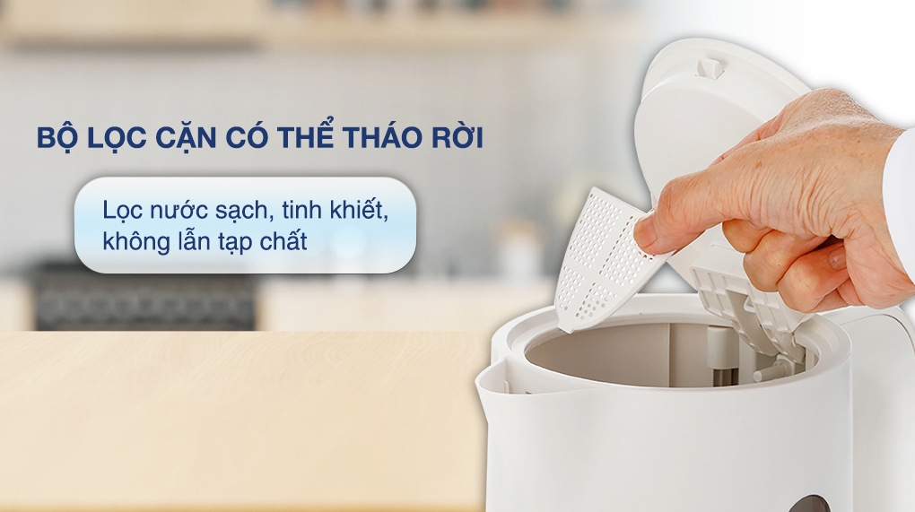 - Bình đun có trang bị lưới lọc cặn, đảm bảo nước rót ra sạch hơn, đồng thời ngăn chặn côn trùng xâm nhập vào bên trong.