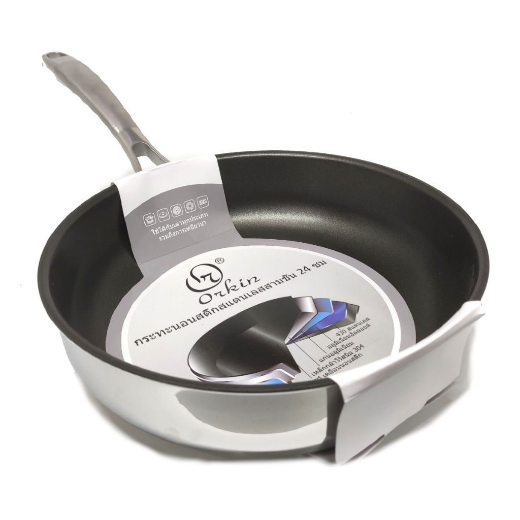 Chảo rán kim cương từ Orkin OR24I-OR26I-OR28I chắc chắn không làm các bà nội trợ thất vọng :) - Chảo chất liệu Inox nguyên khối 5 lớp ,lớp chống dính bên trong sử dụng công nghệ chống dính Whitford của Mỹ - Công nghệ sản xuất trên dây truyền của Tập đoàn Orkin Thái Lan - Thân chảo làm bằng chất liệu Inox nguyên khối dày 0.6mm , truyền nhiệt nhanh, đều, giữ nhiệt tốt. Chống dính hoàn hảo. - Sản xuất theo công nghệ Technology IH của Thái Lan, đáp ứng tất cả các loại bếp từ, bếp điện ... kén chọn chảo trên thị trường. - Bề mặt bên ngoài: Sáng bóng, bền đẹp, dễ dàng vệ sinh -Là loại chảo rán,mặt chảo phẳng - Bền đẹp, an toàn với sức khỏe: Chảo sử dụng chất liệu inox an toàn, có độ bền tốt, không han gỉ hay oxy hóa. Vì vậy, bạn có thể hoàn toàn an tâm sử dụng chảo inox 5 đáy Orkin lâu dài để chế biến thật nhiều món ngon cho gia đình. - Chảo nguyên khối đúc liền giúp truyền nhiệt tốt, tỏa nhiệt đều: Nhờ cấu tạo 5 lớp, nhiệt lượng được tỏa đều khắp đáy chảo, giữ nhiệt lâu hơn. Nhờ đó, thức ăn chín đều, giảm cháy khét hiệu quả, đặc biệt giữ được hương vị tự nhiên của thực phẩm. - Chảo inox 5 đáy Orkin Thái Lan được phủ lớp chống dính Whitford (USA), tuyệt đối không có tình trạng thôi nhiễm vào thức ăn, an toàn cho sức khỏe. Bề mặt chống dính siêu bền, tuổi thọ dài, dễ dàng vệ sinh và tẩy rửa. - Sử dụng được trên mọi loại bếp: Chảo được cấu tạo đáy từ nên sử dụng được trên mọi loại bếp: bếp từ, bếp gas, bếp hồng ngoại. Nên dùng nồi/chảo có đường kính từ 10 cm - 26 cm, bếp từ sẽ cho hiệu suất truyền nhiệt cao và ít gây tổn thất nhiệt Nồi/chảo có thể không tương thích với bếp từ nếu đường kính nồi/chảo lớn hơn đường kính vòng từ trên bếp Nồi/chảo có đáy từ nổi gờ, việc tiếp xúc với mặt bếp từ sẽ ít hơn, có thể làm giảm khả năng tương thích với bếp Thông tin sản phẩm Màu sắc Đen Chất liệu Nhôm, Inox Xuất xứ Thái Lan Đường kính 24-26-28-cm phù hợp với từng như cầu của mỗi gia đình Model OR24I-OR26I-OR28I