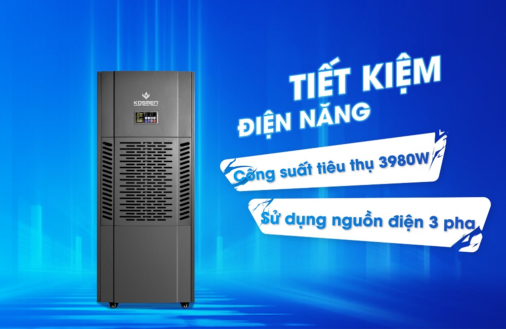 Kosmen KM-250S sử dụng dòng điện 3 pha với công suất tiêu thụ là 3980W thích hợp để sử dụng cho quy mô doanh nghiệp khi ứng dụng trong kho bãi, xưởng bảo quản hoặc một số phạm vi diện tích lớn khác như: nhà hàng, khách sạn, trường học, thư viện,....