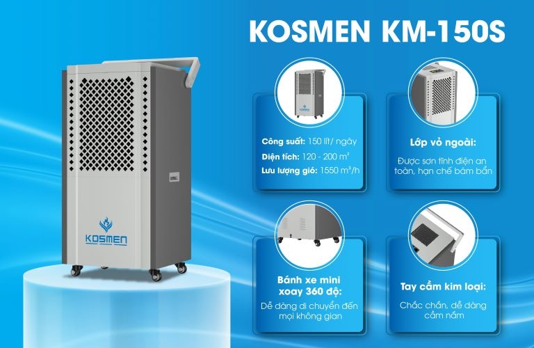 Tại các khu công nghiệp như nhà xưởng, khu chế xuất hay khu bảo quản,... là những nơi luôn có độ ẩm cao do lượng hàng hóa cần bảo quản nhiều. Để duy trì độ ẩm an toàn và ổn định người ta phải dùng đến máy hút ẩm công nghiệp. Hôm nay, chúng tôi xin giới thiệu đến bạn một sản phẩm đến từ thương hiệu nổi tiếng Kosmen đó là Máy hút ẩm công nghiệp Kosmen KM-150S đang rất được ưa chuộng trên thị trường hiện nay.