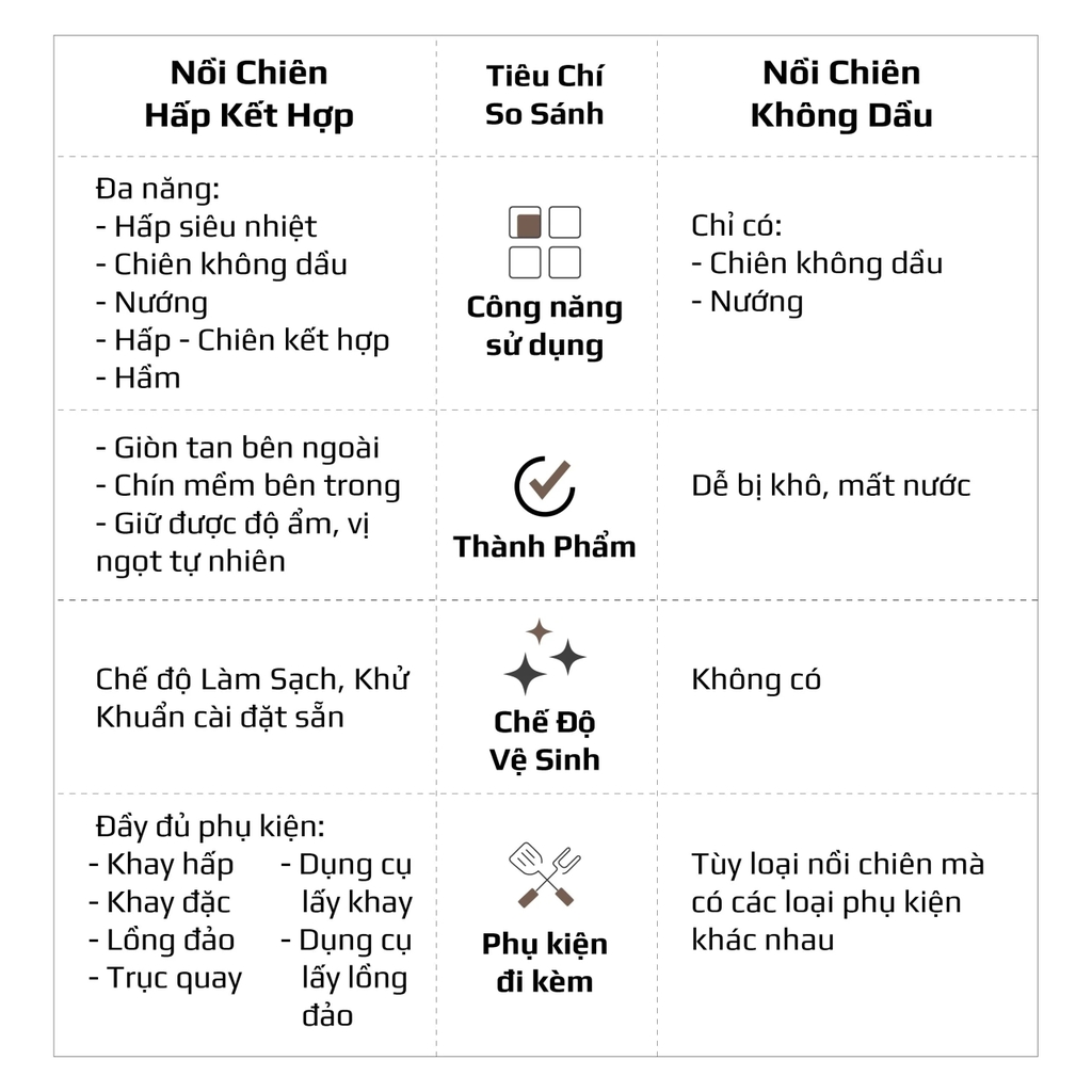 1. Công nghệ chiên không dầu và hấp hơi nước – hai trong một