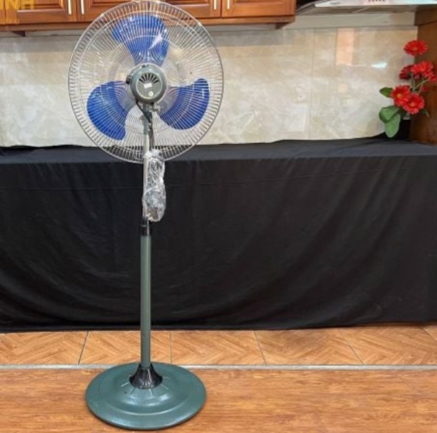 Lồng cánh: chất liệu sắt sơn mạ inox tĩnh điện màu trắng cánh xanh, bản lá mít. Cánh tai voi cho quạt êm hơn, công suất nhỏ hơn cánh vát(không gây ồn) thiết kế đẹp dánh cho văn phòng.