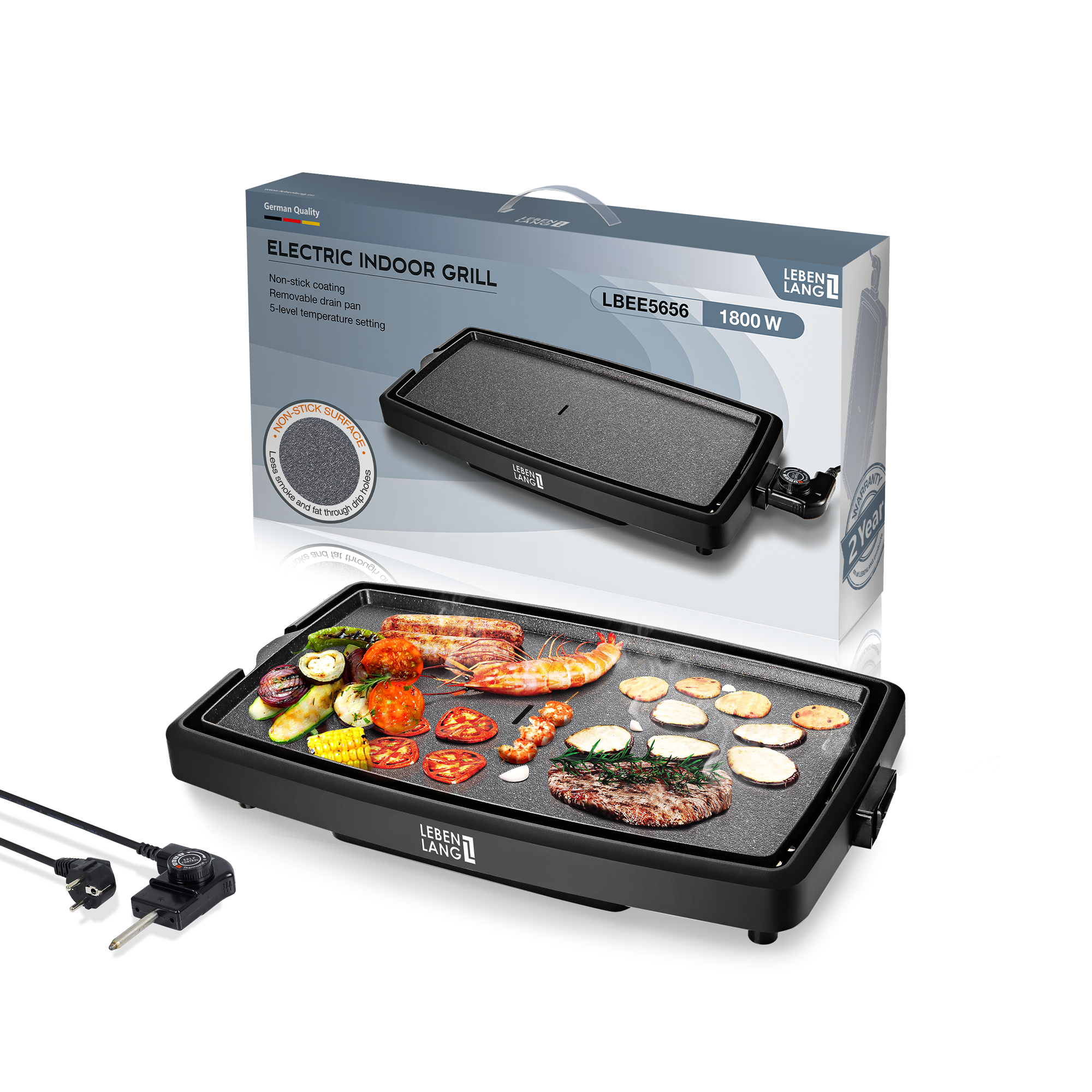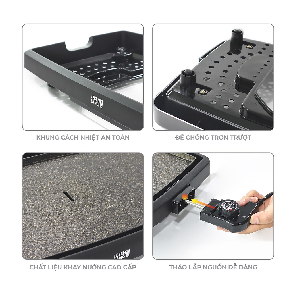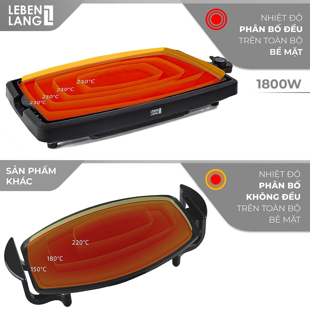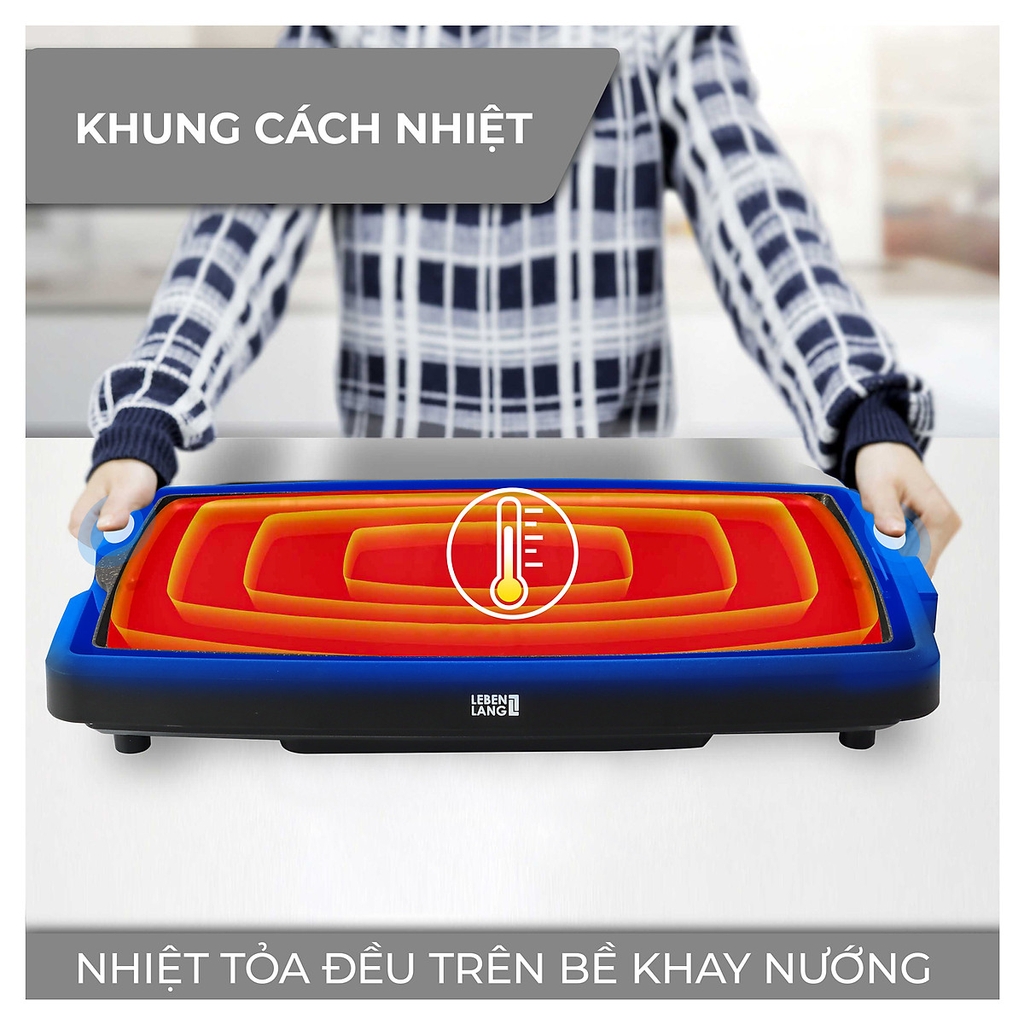 Bếp Nướng Điện LBDD5656 Không Khói Lebenlang hoạt động có khả năng làm nóng nhanh từ 20 độ C lên 240 độ C chỉ trong 1 phút, giúp cho thực phẩm được chín nhanh và đều, đồng thời giữ được hương vị của món ăn. Với 5 mức nhiệt linh hoạt để bạn tùy chỉnh theo từng món ăn, thiết bị thích hợp để chuẩn bị thức ăn cho 6 - 8 người ăn.