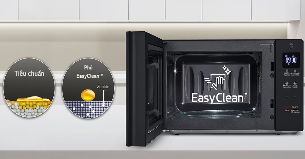 Sản phẩm được tích hợp công nghệ EasyClean™ loại bỏ đến 99,99% vi khuẩn và các vết bẩn cứng đầu giúp khoang lò sạch bóng. Chỉ cần xịt nước vào bên trong, người dùng dễ dàng loại bỏ mọi vết bẩn mà không cần dùng đến chất tẩy rửa hoặc hóa chất mạnh.