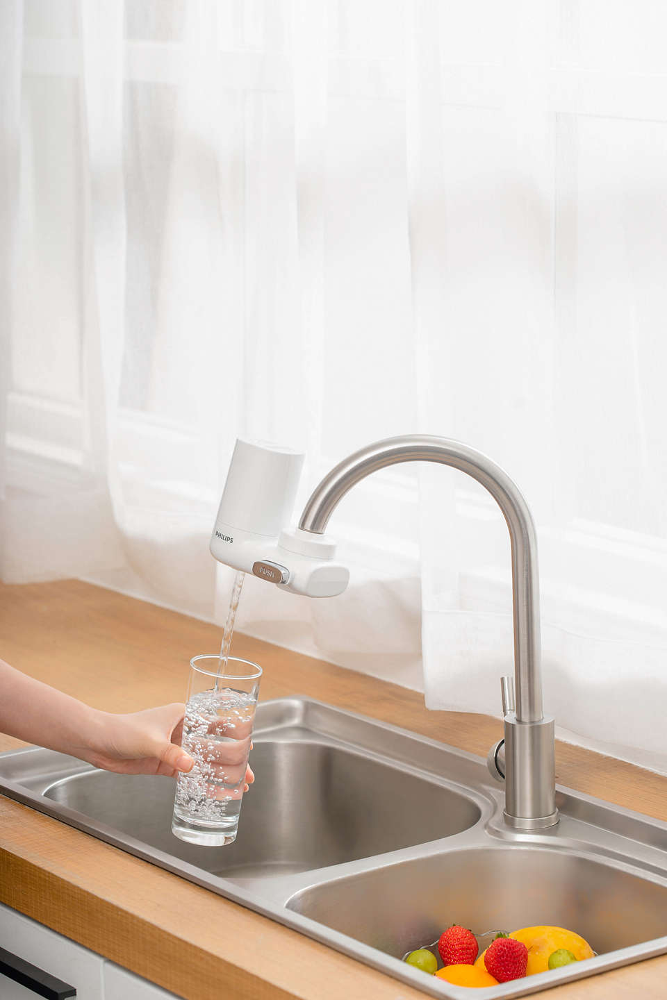 Thưởng thức dòng nước tinh khiết ngọt mát khi bật vòi nước, với hệ thống siêu lọc X-Guard của Philips giúp giảm clo, chì, vi khuẩn và các thành phần có hại khác. Gắn lắp vòi nước cũng rất dễ dàng và nhanh chóng, chỉ cần nhấn vào, thế là xong!