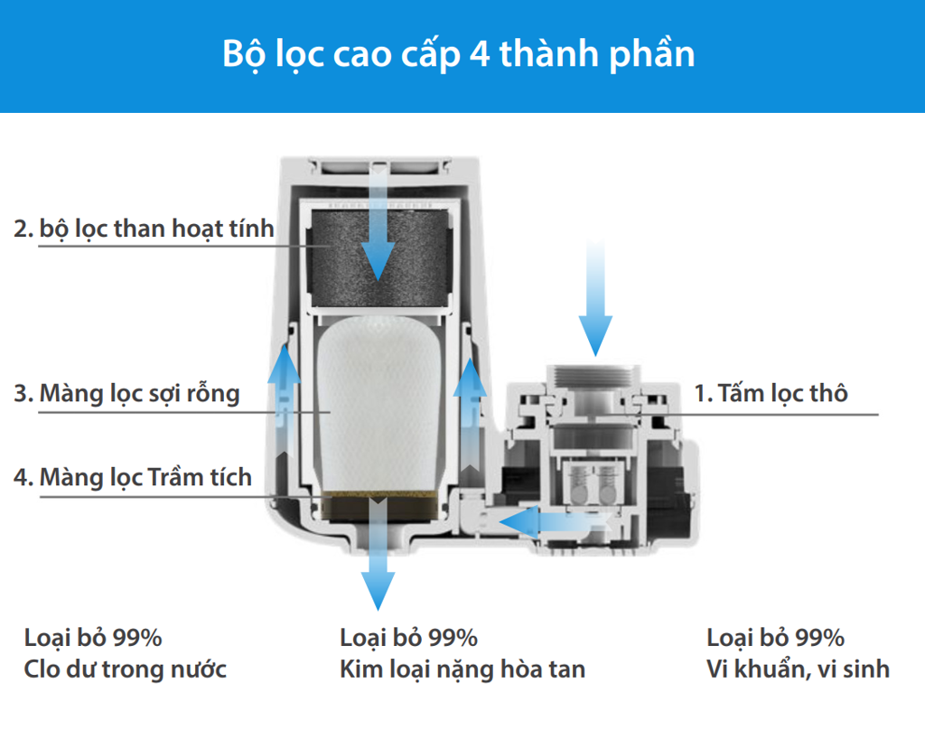 Dễ dàng thay mới bộ lọc quá hạn bằng cách vặn.