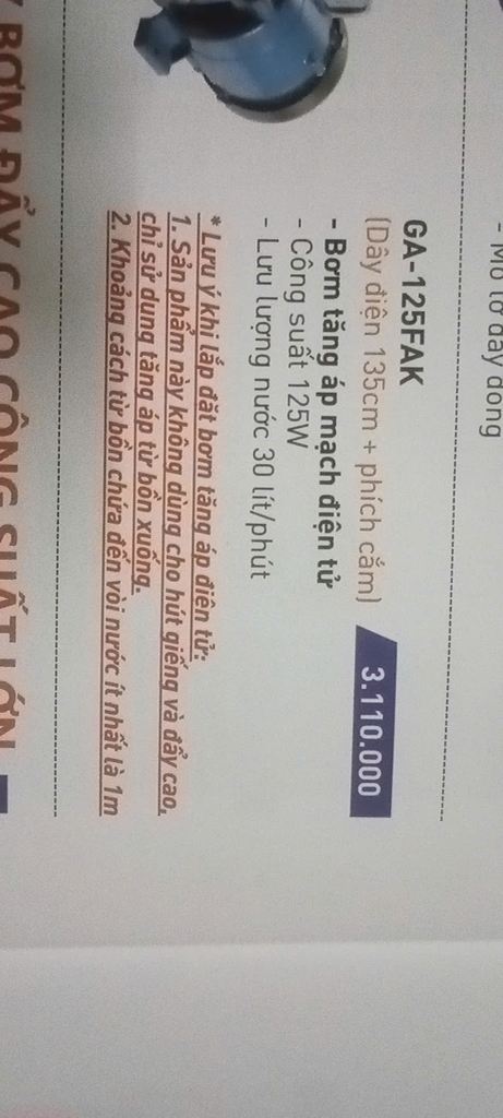 ⛔ Nếu vòi nước cao hơn bồn nước hoặc không thấp hơn bồn 1m (tức là lắp máy bơm để đẩy cao) => máy không hoạt động.
