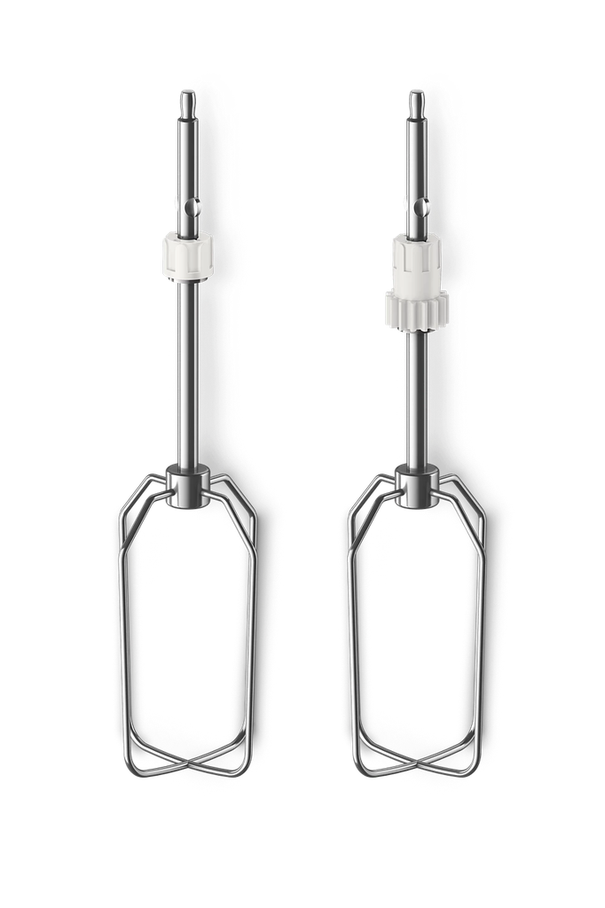 – Phụ kiện đi kèm gồm 2 que đánh trứng và 2 que đánh bột bằng thép không gỉ bền bỉ, dễ dàng tháo lắp.