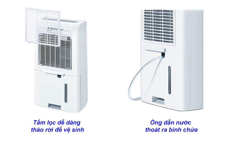 Máy hút ẩm Beurer LE60 Với màn hình hiển thị chi tiết với nhiều chức năng khác nhau sẽ hiển thị chi tiết tình trạng hoạt động và cảnh báo đến người dùng. Máy hút ẩm Beurer LE60 có công suất hút ẩm tối đa 20 lít/24 giờ; bình chứa nước có dung tích xấp xỉ 4 lít. Vì thế, Máy hút ẩm Beurer LE 60 rất phù hợp với căn phòng có diện tích từ 40m2 – 60m2. Hơi nước trong không khí ẩm ngưng tụ lại và nhỏ giọt xuống bình chứa của máy hút ẩm. Bạn cũng có thể gắn ống dẫn nước để nước đọng trong bình trực tiếp chảy ra đầu vòi xả.