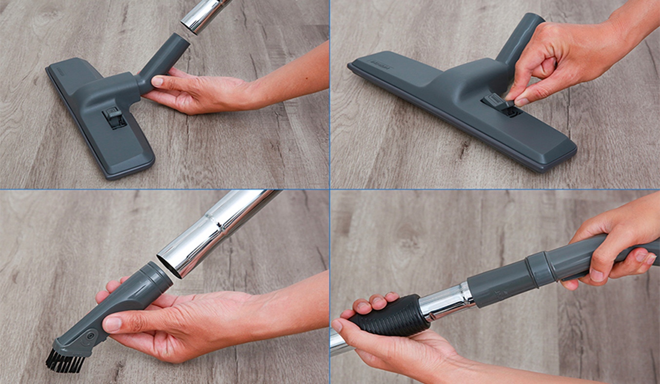 - Đầu hút sàn xoay linh hoạt, đầu hút khe tiện ích