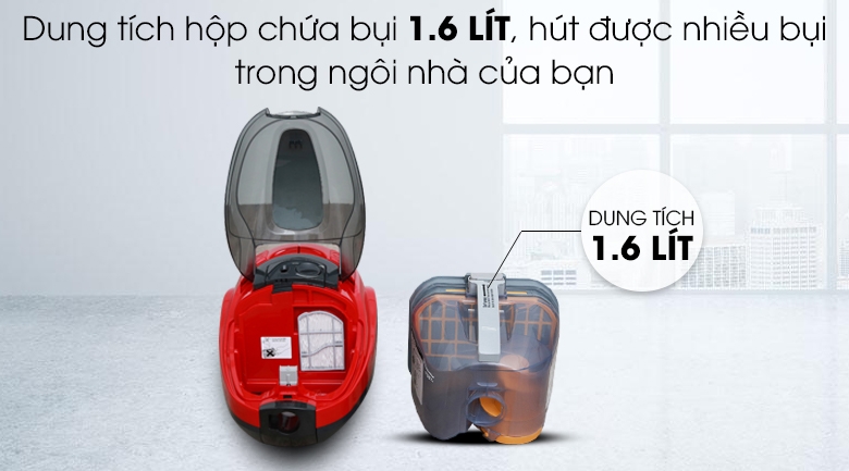 - Dung tích chứa bụi 1.6 lít không cần thay nhiều lần