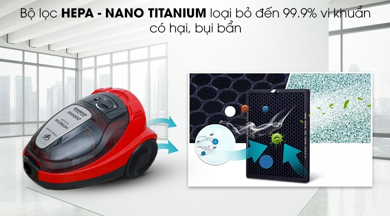 - Bộ lọc Hepa và Nano Titanium giúp khử mùi, kháng khuẩn