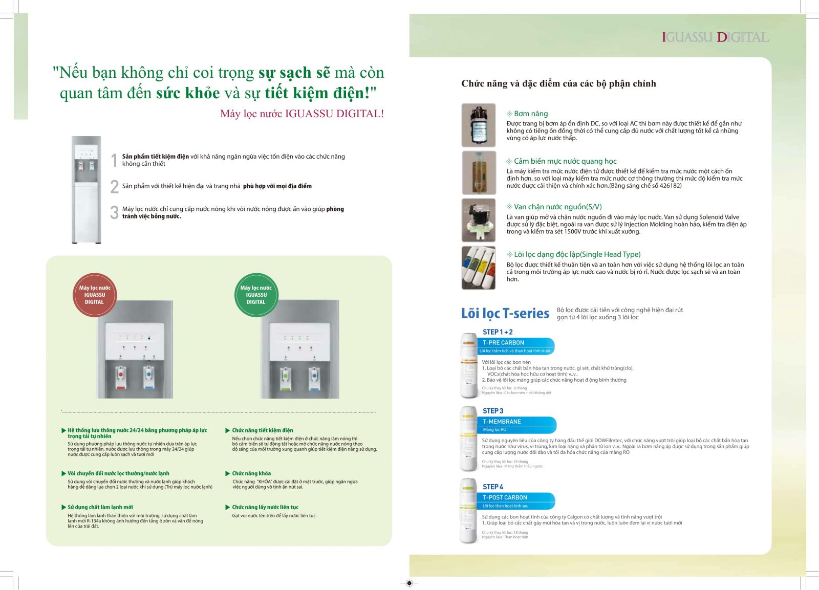 Hệ thống lọc RO 4 bước, sử dụng lõi lọc cao cấp nguyên khối công nghệ mới.