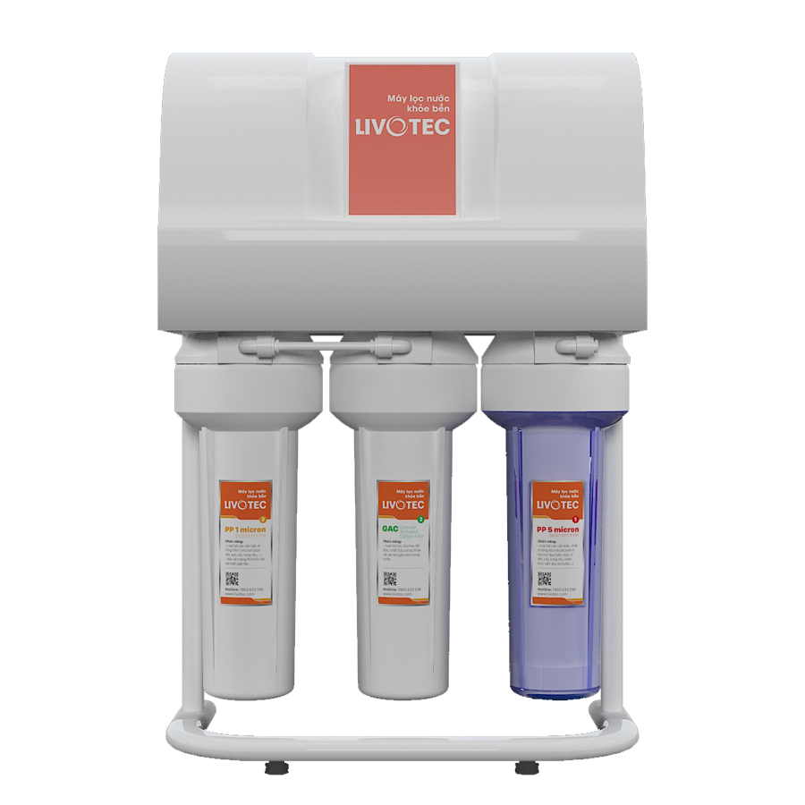 Máy lọc nước gia đình Livotec LRB107 tích hợp màng lọc RO - công nghệ thẩm thấu ngược loại bỏ cặn bẩn, vi khuẩn có kích thước 0.1 - 0.5 nanomet (chỉ to hơn vài ba phân tử H2O), vì thế chỉ cho các phân tử nước đi qua tạo nên nguồn nước tinh khiết cho gia đình.