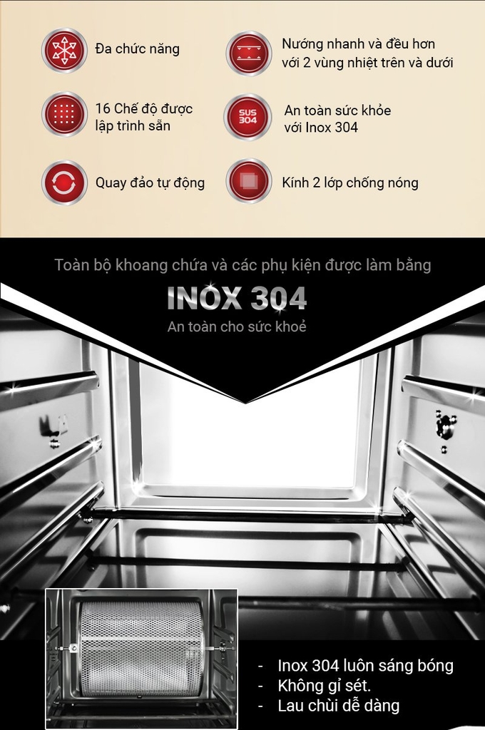 Ngoài ra sản phẩm này là sản phẩm nổi bật trên thị trường bởi nó được nâng cấp với cá các công nghệ mới hiện đại trong đó có chế độ gia nhiệt kép. Chế độ gia nhiệt kép này chính là cơ chế sử dụng 2 nguồn tỏa nhiệt khiến cho thực thực phẩm bên trong chít đều và nhanh chóng. Điều này giúp cho các thực phẩm khi chế biến vẫn giữ được độ tươi ngon và hương vị và đặc biệt là thành phần dinh dưỡng mà nó đem lại.