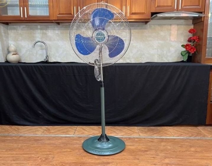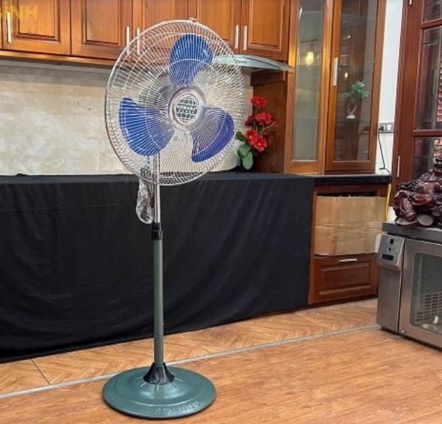 Lồng cánh: chất liệu sắt sơn mạ inox tĩnh điện màu trắng cánh xanh, bản lá mít. Cánh tai voi cho quạt êm hơn, công suất nhỏ hơn cánh vát(không gây ồn) thiết kế đẹp dánh cho văn phòng.