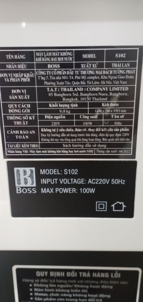 [Hàng chính hãng] Quạt làm mát không khí Boss S106 - Xuất xứ thương hiệu Nhật Bản